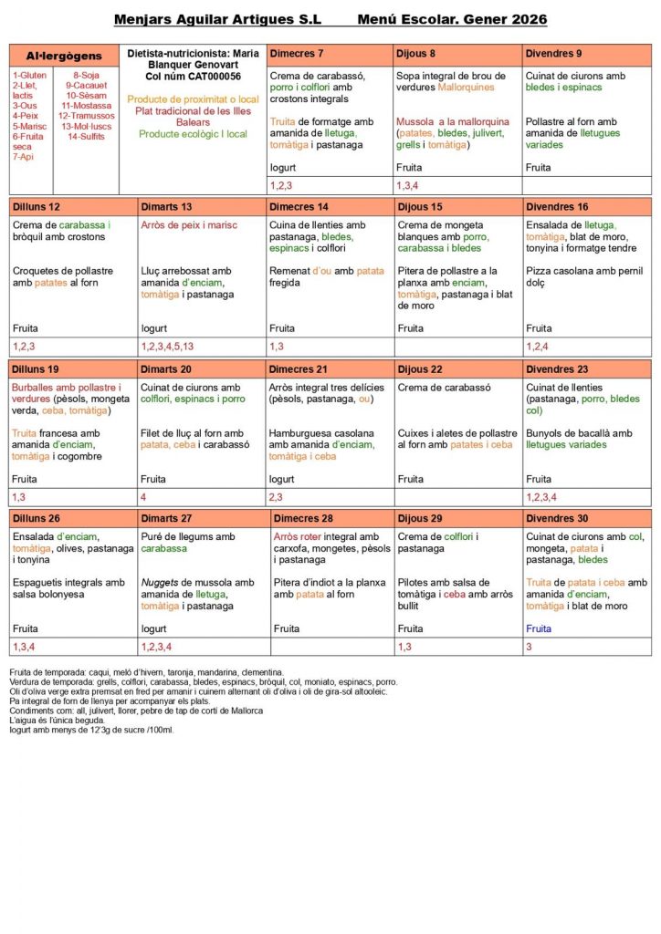 Menú de Gener 🥗